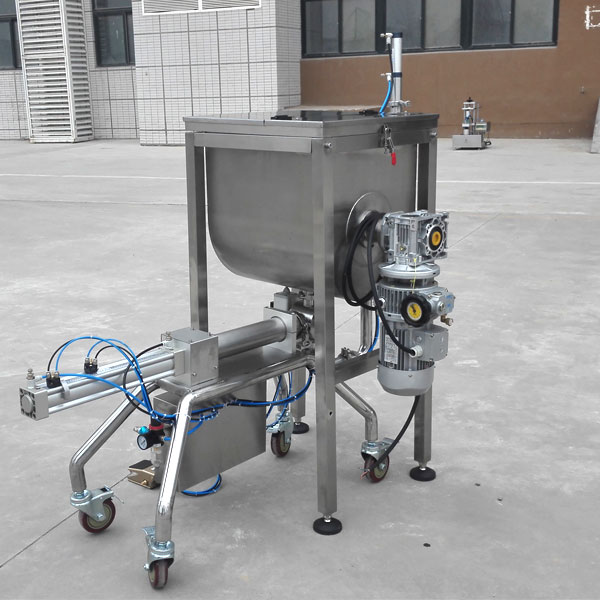 星火機(jī)械設(shè)計(jì)研發(fā)的半自動(dòng)醬料灌裝機(jī)是一款廣泛適用于食品、化工、醫(yī)藥等行業(yè),特別實(shí)用于調(diào)味品種帶顆粒并且濃度較大的辣椒醬、豆瓣醬、花生醬、芝麻醬、果醬、牛油火鍋底料,紅油火鍋底料等粘稠醬類的灌裝的小型醬料灌裝設(shè)備。設(shè)備機(jī)型設(shè)計(jì)合理,機(jī)型小巧,操作方便,物料接觸部分均采用304不銹鋼材料制成,灌裝量調(diào)節(jié)手柄、灌裝速度可任意調(diào)節(jié),灌裝精度高。灌裝悶頭采用防滴漏、防拉絲及升降灌裝裝置。料斗帶有可調(diào)速攪拌裝置,使物料更均勻灌裝。臥式攪拌結(jié)構(gòu),保證了醬和油的充分混合,大大提高灌裝性能和計(jì)量的精度、